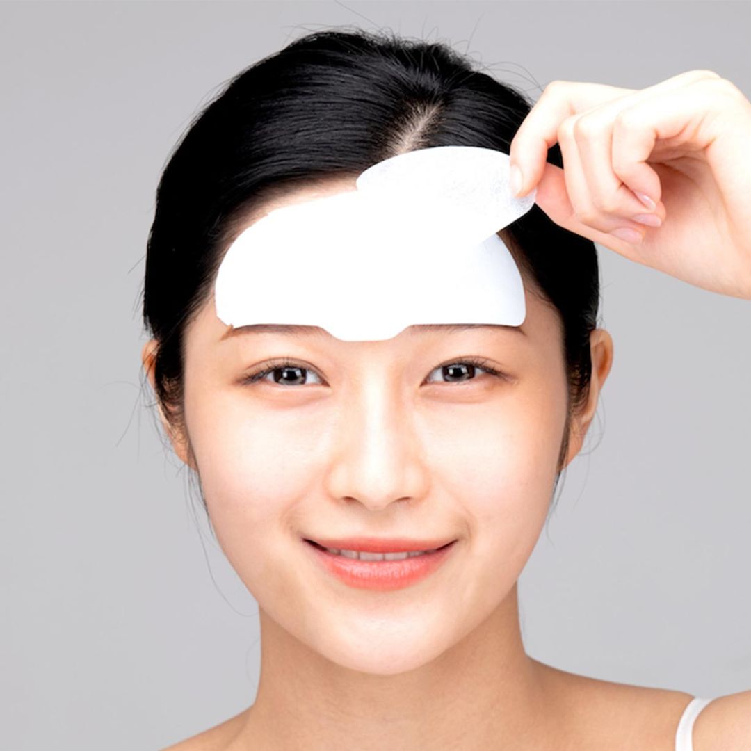 - Limpia y seca bien la frente y las mejillas.